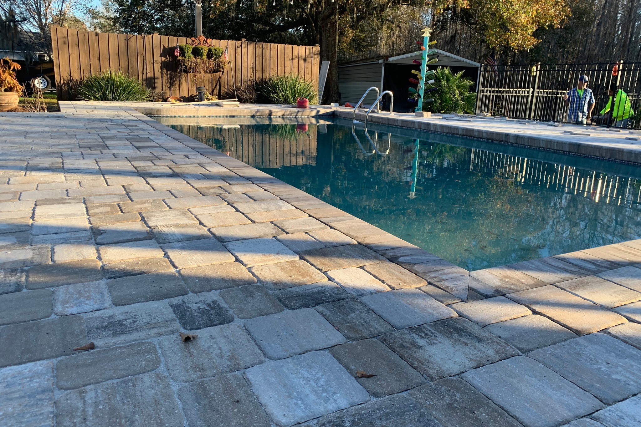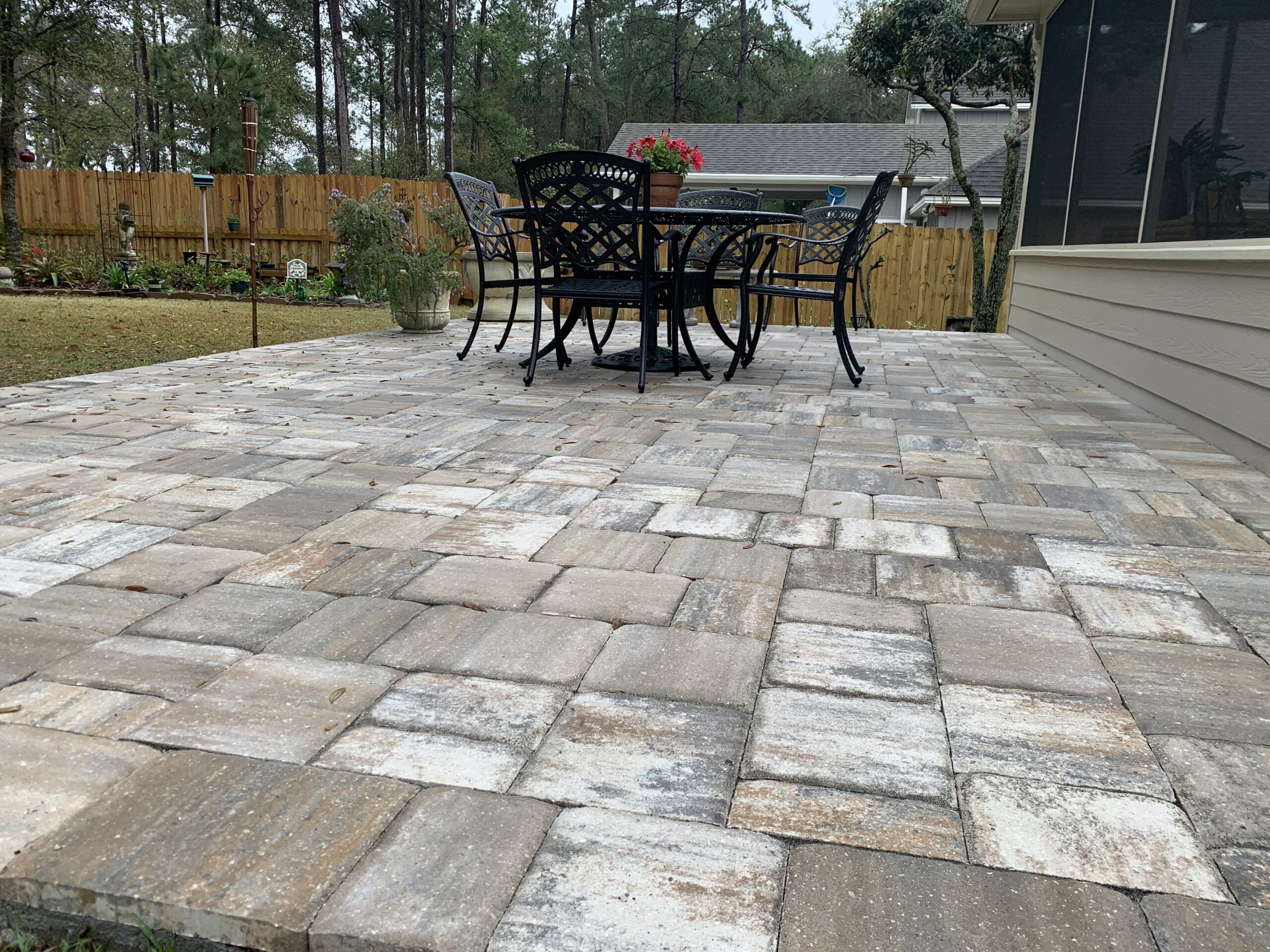 The Travertine Advantage: We specialize in Travertine and textured pavers. Travertine is a natural stone. It reflects sunlight. It stays cooler than concrete in the summer sun. This is essential for bare feet in Valdosta.